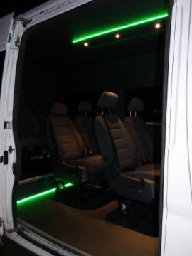 9 os. kofortowe busy z pojedynczymi regulowanymi fotelami.