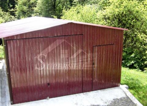 Przedmiotem ogłoszenia jest garaż blaszany o wymiarach 5x6 m z bramą uchylną otwieraną do góry. Konstrukcja garażu wykonana jest z kątowników oraz ceowników giętych na zimno. Konstrukcja pomalowana jest farbą podkładową. Całość obłożona jest blachą akrylową I gatunku i przymocowana do konstrukcji za pomocą nitów aluminiowych. Całość jest stabilna i bezpieczna.