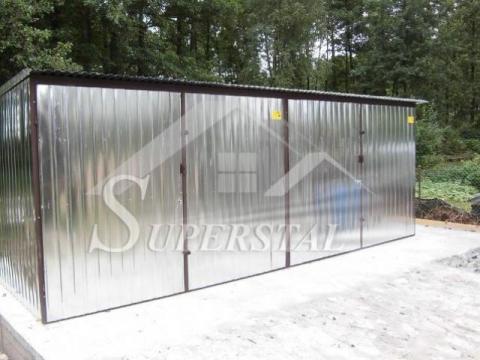 Przedmiotem ogłoszenia jest garaż blaszany o wymiarach 6x5 z bramami otwieranymi na boki. Konstrukcja garażu wykonana jest z kątowników i ceowników ocynkowanych giętych na zimno. Całość obłożona jest blachą ocynkowaną ogniowo I gatunku i przymocowana do konstrukcji za pomocą nitów aluminiowych.