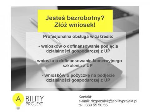 Oferta skierowana do osób bezrobotnych chcących pozyskać dotacje z Urzędu Pracy