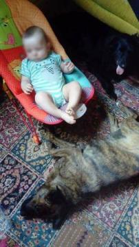 Lala...moja tymczasowiczka - przygarnięta na czas naszego pobytu na dzialce,tj od czerwca. Lala nigdy nie miala domu ,nie miala pojęcia, o co mi chodzi, kiedy dałam jej miskę z wodą, potrafila pic tylko z kałuży, rzucająca się dosłownie na WSZYSTKO co mozna zjesc, łącznie z obierkami z warzyw. To najwdzięczniejsza ze wszystkich psow,jakie w życiu widzialam, lgnie niesamowicie do człowieka, jest fanatyczna do dzieci. Na spacerze bez smyczy idzie koło nogi, śpi dotykając choćby nosem człowieka...Kilka razy jeździła samochodem, nie ma choroby lokomocyjnej.