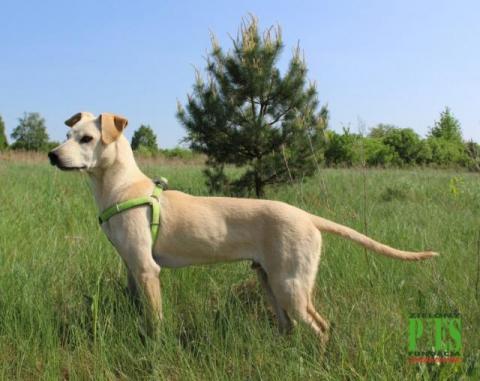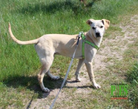ZYZIO, ur. 08. 2017 r. Dość energiczny, średniej wielkości - waga 13 kilo. Sierść krótka , jasna -biszkoptowa. Lubi zabawy z piłką i innymi psami. Obecnie mieszka w domu z innymi psami i kotami. Nie konfliktowy.