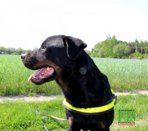 Do adopcji Dragon, pies w typie rottweilera ur. 2013r. Do domu, który zna rasę, bez małych dzieci. Jest żywiołowym i energicznym psem. Posłuszny, przy jedzeniu bardzo grzeczny.