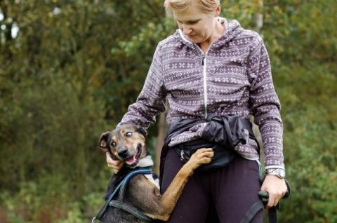Brita to młoda sunia, ma ok 5 lat. Wesoła, energiczna, bardzo skoczna. Bez problemu dogaduje się z psami i sukami (bywają jednak takie suczki, co do których Brita ma jakieś "ale"). Wysoka, szczupła o pięknym umaszczeniu. Bardzo lubi ludzi i ceni sobie kontakt z nimi. Na smyczy trochę ciągnie ale odpowiednio dobrane szelki i praca z psem na pewno przyniosą sukces. Brita potrzebuje cierpliwych ale i aktywnych ludzi, którzy lubią codzienne długie spacer i będą w stanie znaleźć czas na codzienne zabawy z Britą.