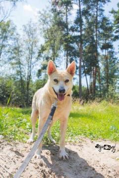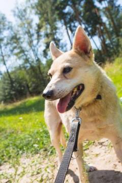 Biała w tym momencie jest jeszcze lękliwa, ale nie wykazuje żadnej agresji. Pomalutku przekonuje się do człowieka. Zaczęła wychodzić z wolontariuszami na spacer. Dobrze dogaduje się z psami. Biała ma około 6 lat.