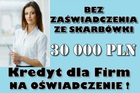 KREDYT DLA FIRM NA OŚWIADCZENIE - 30 000 PLN BEZ ZAŚWIADCZENIA ZE SKARBÓWKI!