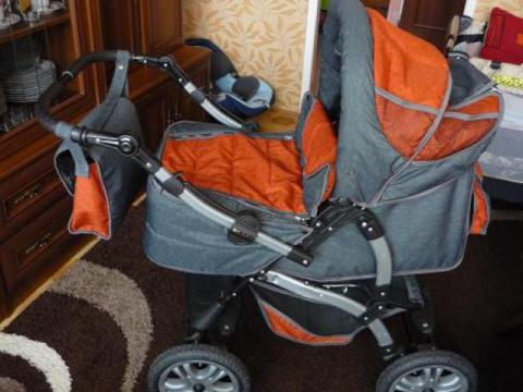 Sprzedam wózek używany, w bardzo dobrym stanie, bez żadnych uszkodzeń i plam, dla niemowlęcia lub dziecka starszego z funkcja spacerówki. Kolor ciemnoszary i ciemnopomarańczowy. Trzystopniowa regulacja oparcia aż do pozycji leżącej, pasy bezpieczeństwa, dość duże koła z z hamulcami zarówno na koła przednie jak i tylne. Ruchoma rączka, dzięki czemu dziecko może być prowadzone przodem oraz tyłem do kierunku jazdy. Regulacja wysokości rączki-dla osób wyższych lub niższych. Odpinana tapicerka, którą można prać. Dodatkowo obszerny kosz na zakupy oraz torba na drobiazgi. Ruchomy podnóżek dzięki czemu zarówno małe jak i większe dziecko może korzystać z funkcji spacerówki. Wózek posiada osłonkę odpinaną dla niemowlaka na zimę oraz dwa wywietrzniki zapinane na rzepy przydatne w upalne dni. Wózek można składać a koła zdejmować. Waga ok.14kg.Lublin,ul.Droga Męczenników Majdanka