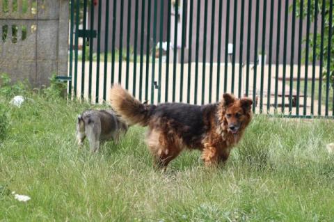 Hugo. Ok. 5/6 letni piękny, dostojny pies w typie owczarka. O niespotykanej falującej, brązowo-złoto-podpalanej sierści. Wpatrzony w człowieka, toleruje też inne psy.