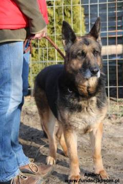 Amber to suczka rasy owczarek niemiecki w wieku ok 10 lat. Suczka jest w bardzo dobrej kondycji, bardzo lubi spacery, jest w miarę energiczna. Suczka potrafi zachować się w domu, zachowuje czystość, umie chodzić na smyczy. Jest przyjaznym i bardzo kontaktowym psem. Dogaduje się z samcem ze schroniskowego boksu. Prosimy nie pozwólmy odejść jej w schronisku.
