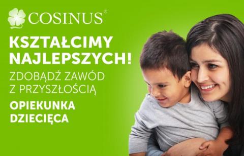 Szkoła Cosinus zaprasza na bezpłatny kierunek OPIEKUNKA DZIECIĘCA! Chcesz zdobyć kwalifikacje do pracy z dziećmi zdrowymi, chorymi i niepełnosprawnymi do czwartego roku życia? Zapraszamy! Rekrutacja trwa! Nauka trwa 2 lata, system zaoczny!