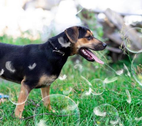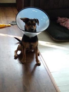 Może mieszkać z innym pieskiem, chociaz ma tendencję do wyjadania pozostałym psiakom w stadzie z misek.