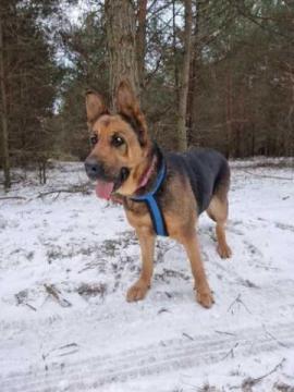 Delicja to większa dama w typie owczarka niemieckiego. Waży 40kg, ma około 5 lat. Dogaduje się z większością psich panów i toleruje wybrane psie panie. Potrafi chodzić na smyczy. Lubi długie spacery, głaskanie i zabawy z dziećmi. Jest odrobaczona, odpchlona, wykastrowana, zaszczepiona.