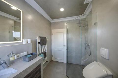 Mikrocement jest wodoodporny, zatem nadaje się do pomieszczeń mokrych, tworzy niezwykle trwałą powłokę odporną na zarysowania, ścieranie, tłuszcz oraz chemię gospodarczą. Tworzy płaską powierzchnię, dzięki czemu łatwo jest zachować całe pomieszczenie w czystości.