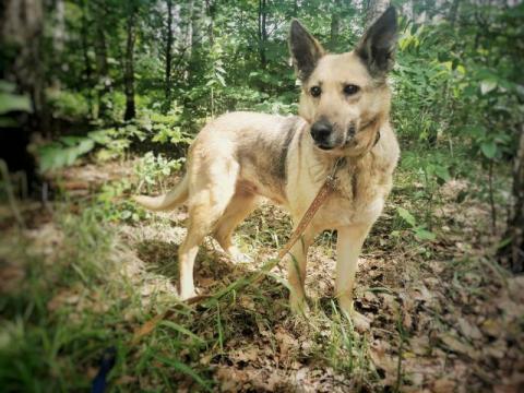 Plamka ma 5 lat i waży 25kg. Ma spokojną naturę, idealnie idzie na smyczy, nie ciągnie, w domu nie szczeka chociaż spędza całe dnie w samotności to jest cichutka jak myszka, dopiero rano kiedy usłyszy inne psy, szczeka głośno by dać znać, że potrzebuję wyjść. Nigdy nie nabrudziła w domu. Nie pogryzła nic co jest w pomieszczeniu w którym ona przebywa. Jest w pełni gotowa do adopcji, zdrowa, po szczepieniach, po zabiegu sterylizacji. Niestety nie zna kotów, reaguje na nie dużym ożywieniem, gdyby nie była na smyczy z pewnością by je goniła. Słucha komend więc zainteresowanie kotem trwa chwilę, wystarczy ją odciągnąć.