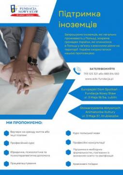 Інтеграція в суспільство через індивідуальний розвиток і посилення активності в різних сферах соціального та професійного життя іноземців. Ми хочемо, щоб іноземці опинилися на польському ринку праці та були впізнаваними в місцевому середовищі.