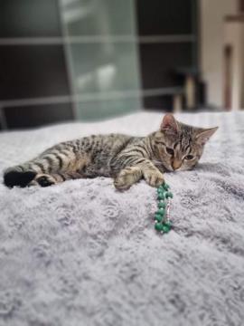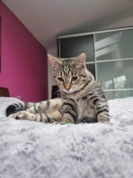 Misia to około pół roczna kotka, jest odrobaczona, odpchlona, zaszczepiona, zaczipowana i wykastrowana. Ma ujemne testy fiv i felv- czyli zdrowa. Lgnie do człowieka i zachowuje czystość w domu.