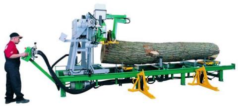 Obustronne prowadzenie mostu na sekcji przejazdowej w kombinacji z silnikiem o dużej mocy umożliwia płynne i szybkie ściąganie nawet ciężkich kłód za pomocą podajnika uciętego materiału. Maszyna jest wyposażona w posuw szybki mostu z automatycznym zwalnianiem w położeniach krańcowych. Podstawowa wersja maszyny ma długość cięcia 7, 7 metra i jest wyposażona w następujące urządzenia hydrauliczne: prowadzenie taśmy piły