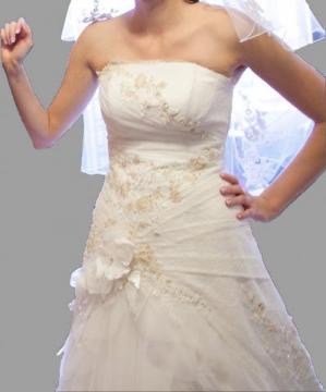 Lubliniak » Ślub i wesele: Suknie ślubne » SUKNIA ŚLUBNA z welonem kolor jasny ECRU rozm. 38