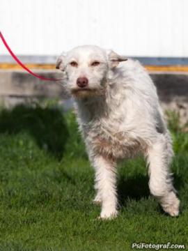 Biała,terierowata sunia czeka na dom!