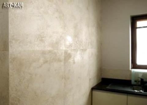 Okładziny STONE to cienki fornir kwarcowy, lekki i elastyczny (giętki). Idealny materiał wykończeniowy do wnętrz. Okładziny na ścianach wyglądają jak równo przycięte, kamienne płyty (gruboziarnisty piaskowiec). Ciepłe w dotyku, łatwe w czyszczeniu, bardzo trwałe. Odporne na wodę i zabrudzenia. Cena co najmniej dwukrotnie niższa od ceny kamienia. Bardzo łatwy montaż, Klejenie po łukach, Oszczędność miejsca. Wymiar 81cm x 54cm, cena arkusza - 49,50zł. Pełna informacja na www.art-kam.com.pl