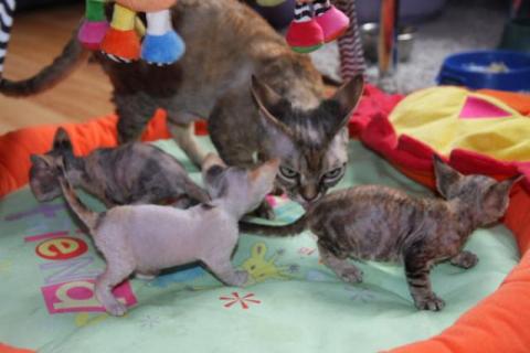 Zapraszam do rezerwacji kociąt Devon Rex - 4 kociczki i 2 kocurki. Maleństwa starannie w domu odchowane, zaszczepione z rodowodem Felis Polonia.