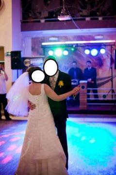 1-częściowa, lekka i elegancka. Uszyta z najwyższej jakości organtyny w modne zakładki, podpinany tren, kształt w literę A wyszczupla sylwetkę. Z tyłu gorset regulowany. Rozmiar 36/38. Wzrost ok.165 cm plus obcas . Gratis: halka, welon długi (2 m) i krótki, rękawiczki, bolerko.