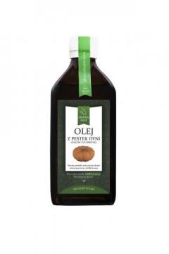 Olej z Pestek Dyni powstaje ze starannie wyselekcjonowanych pestek dyni. Tłuszcze zawarte w pestkach dyni zaliczają się do pełnowartościowych tłuszczów roślinnych, tak zwanych NNKT, które bezwzględnie musimy dostarczać wraz z pożywieniem. Jest doskonałym środkiem o działaniu przeciwpasożytniczym oraz niezwykle przydatny we wczesnych fazach przerostu gruczołu krokowego.