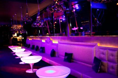 Meble sprowadzone na zamówienie z Włoch oraz z Francji, ściany z płatkami złota, podświetlane stoliki. Loże z wysokiej jakości obiciami tapicerskimi.