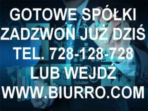 Jeśli zależy Ci na szybkim założeniu działalności przy pominięciu masy formalności, która związana jest z tym procesem - nie zwlekaj! U nas w każdej chwili możesz kupić gotową, zarejestrowaną Spółkę z czystym kontem! Czas to pieniądz! Odnajdź w nas solidnego i profesjonalnego partnera z doświadczeniem. W Naszej ofercie znajdziesz bogaty wybór czystych spółek w cenie od 3500 zł z lat od 1991-2015 roku www.biurro.com tel. 728-128-728
