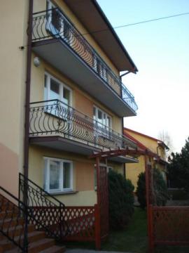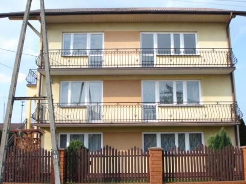 Do domu są 2 wejścia. Zaletą domu jest klatka schodowa, która jest "na zewnątrz". Na każde piętro jest oddzielne wejście, które powoduje, że każda kondygnacja może być oddzielnym mieszkaniem. Oprócz domu na działce znajduje się budynek gospodarczy o powierzchni 69 m2, składający się z garażu z kanałem (ok. 30 m2), korytarza i 2 pomieszczeń z podłączoną wodą. Budynek jest murowany, wybudowany 1995 roku z przeznaczeniem do prowadzenia działalności gospodarczej.