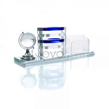 Przedmiotem aukcji jest ekskluzywny wizytownik biurkowy. W całości wykonany ze szkła, z ogromną precyzją szczegółów stanowi gwarancję doskonałej jakości. Wizytownik posiada niezbędne do optymalnej organizacji miejsca na biurku elementy w postaci: miejsca na wizytówki, przybory do pisania oraz dekoracyjny globus wykonany ze szkła
