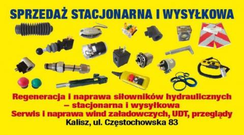Oferujemy części takie jak silniki elektryczne, pompy hydrauliczne, cewki elektrozaworów, cewki rozruchowe, zbiorniki oleju, osłony siłowników, sterowniki ręczne i nożne, piloty, światła ostrzegawcze, flagi i wiele innych.