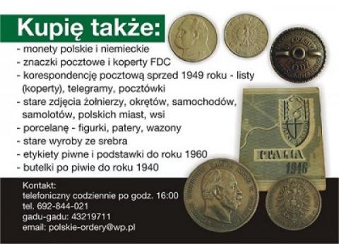 Kupię medale, odznaki wojskowe, znaczki i monety