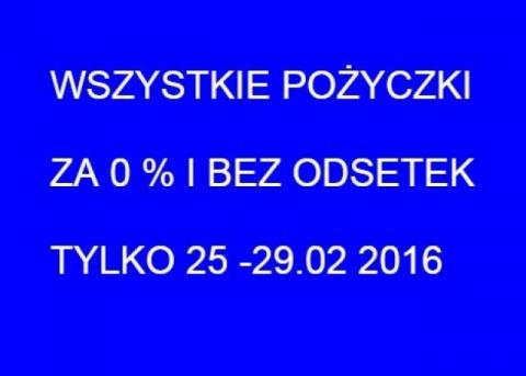 Pożyczki za 0% i bez prowizji tylko 25-29.02.2016