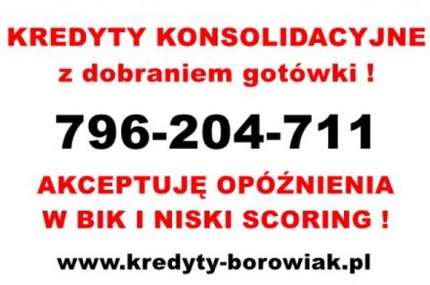 Kredyty KONSOLIDACYJNE z dobraniem gotówki!CAŁA PL