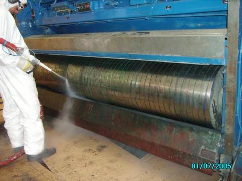 Czyszczenie maszyn przemysłowych suchym lodem.